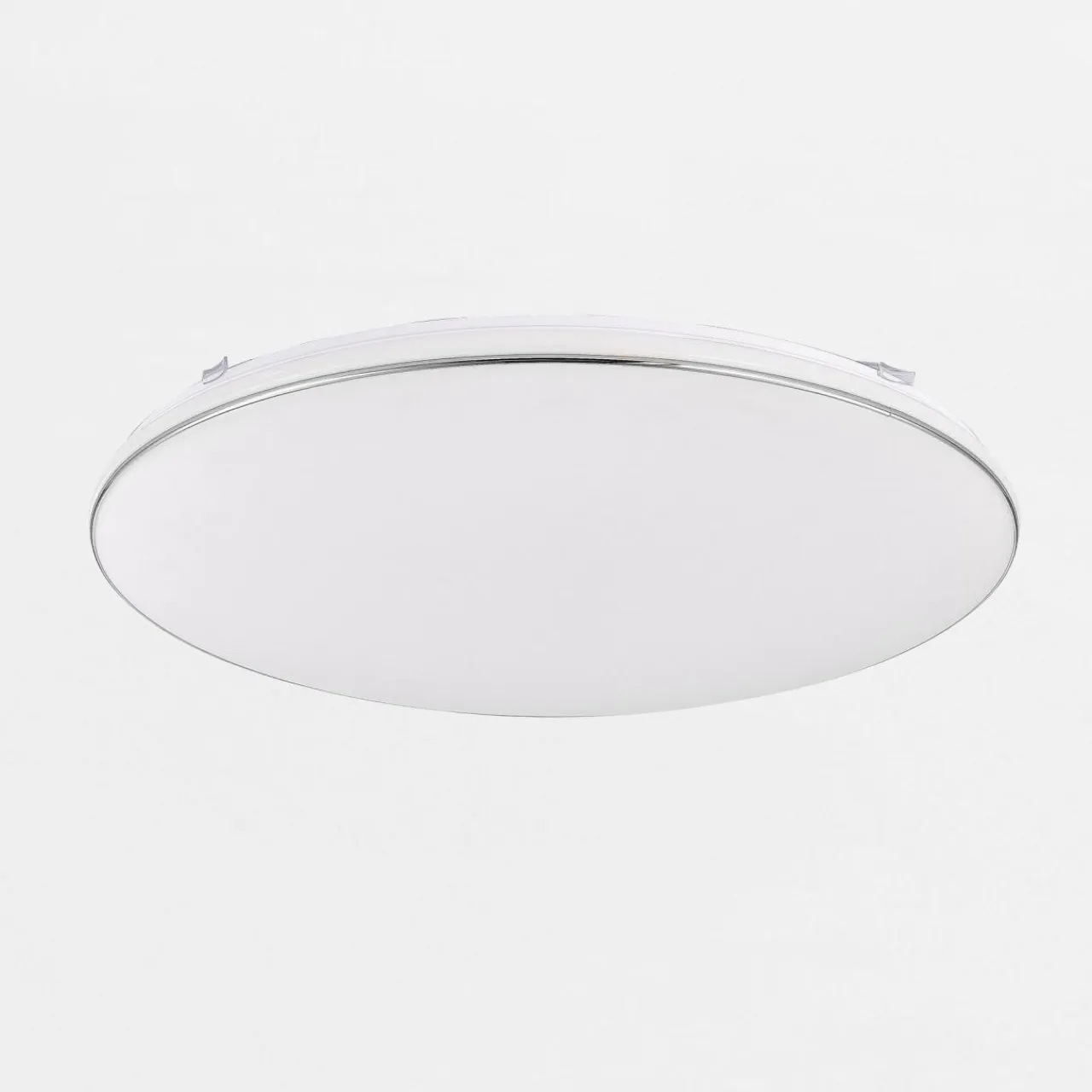 - Ozdobny, biały pierścień z chromowanym wykończeniem doskonale równoważy prosty, funkcjonalny styl plafonu – jednocześnie pozwala dopasować lampą do specyfiki wnętrza w nowoczesnym stylu.