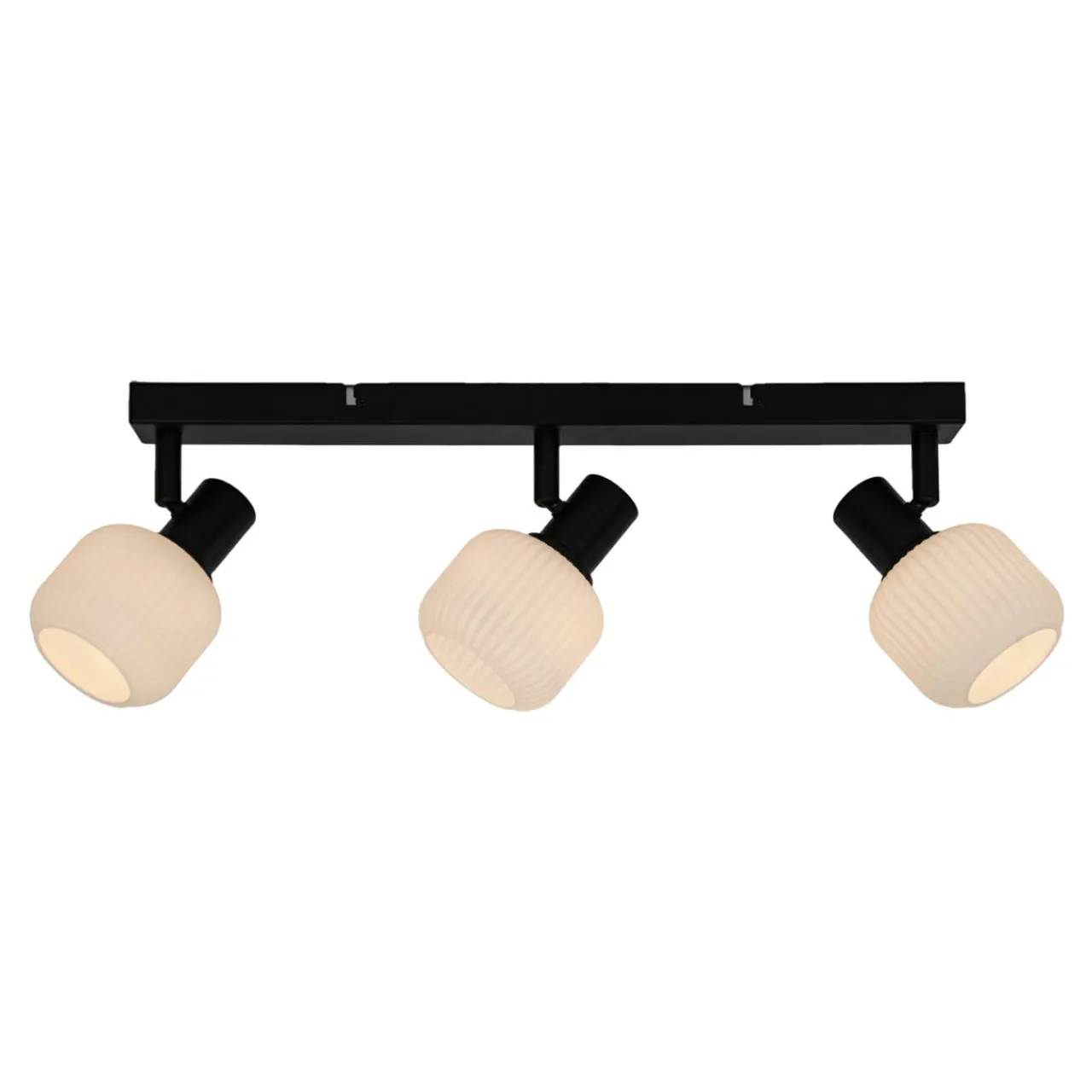 - 3 białe, mleczne klosze ładnie kontrastuje z czarną, matową oprawą podstawy. Do zawieszenia w jasnym, chłodnym wnętrzu oraz w ciepłych pastelowych kolorach otoczenia.