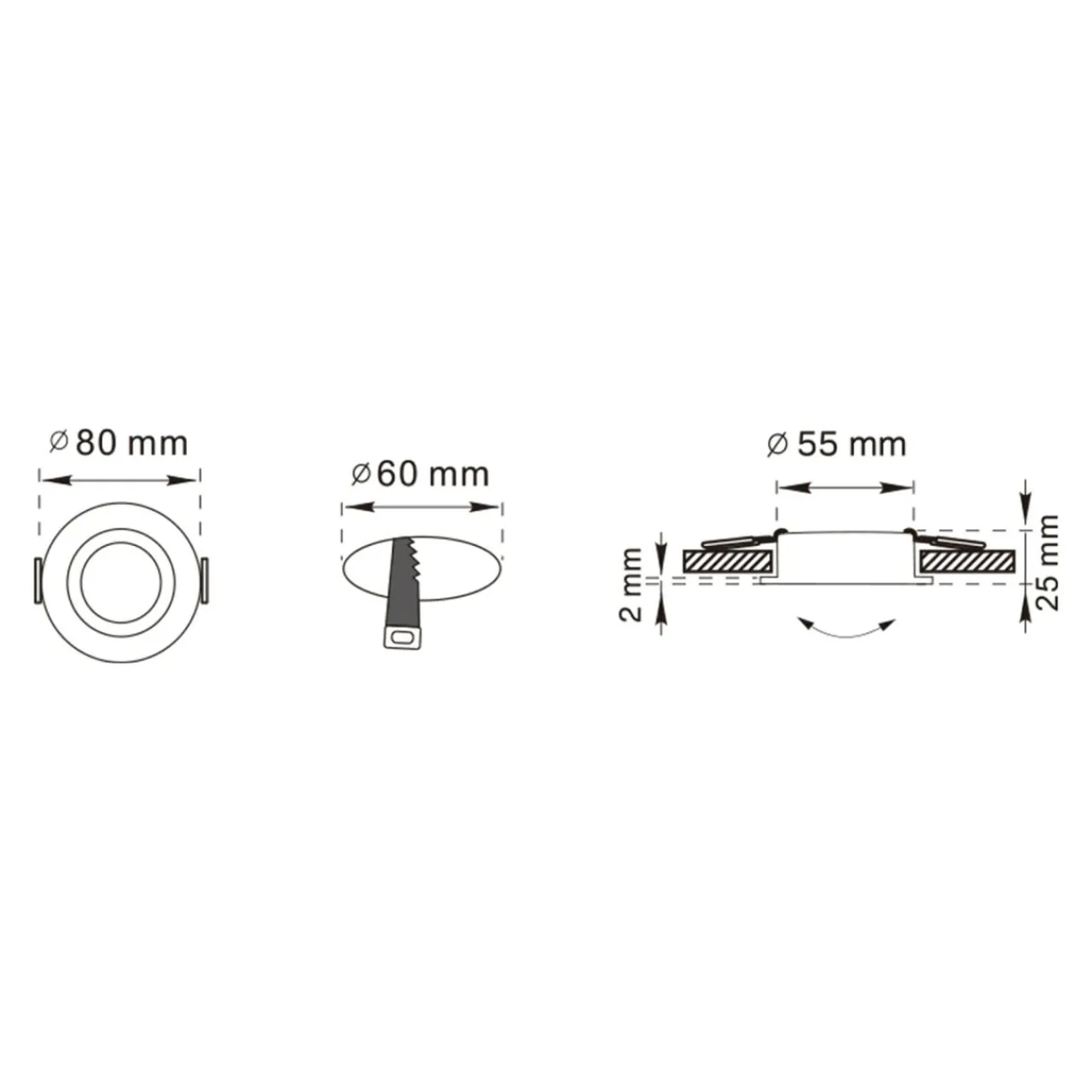 Ma charakter spotu podtynkowego, którego wąska kryza wystaje zaledwie 2 mm ponad powierzchnię sufitu, podczas gdy jego średnica wynosi 8 cm.