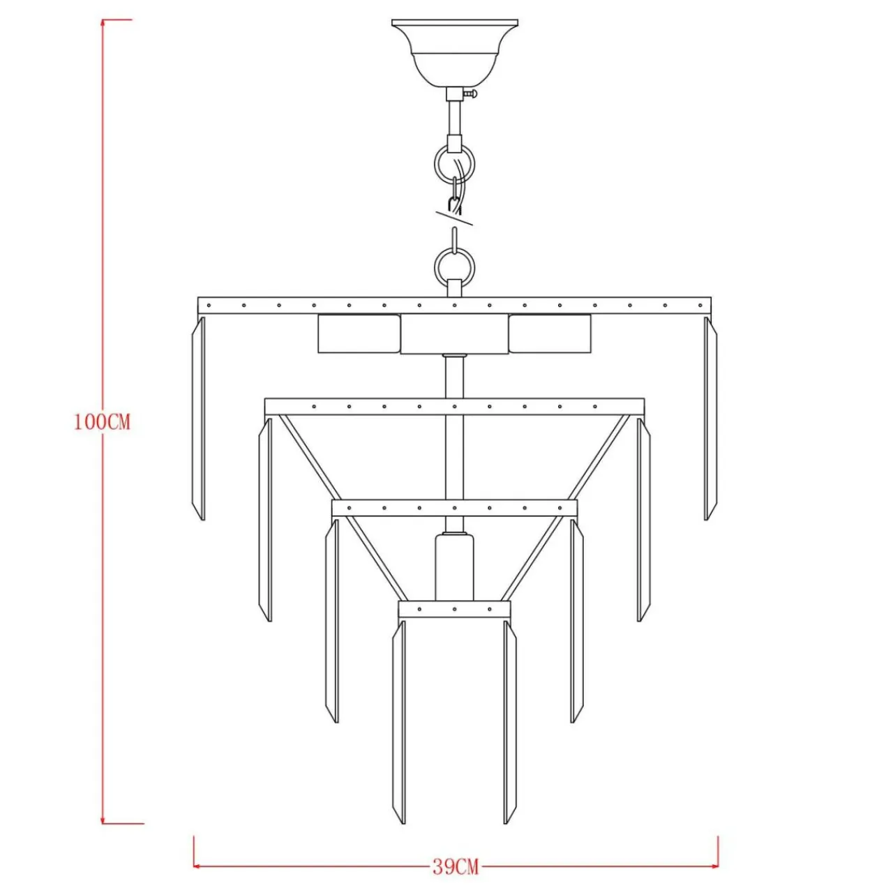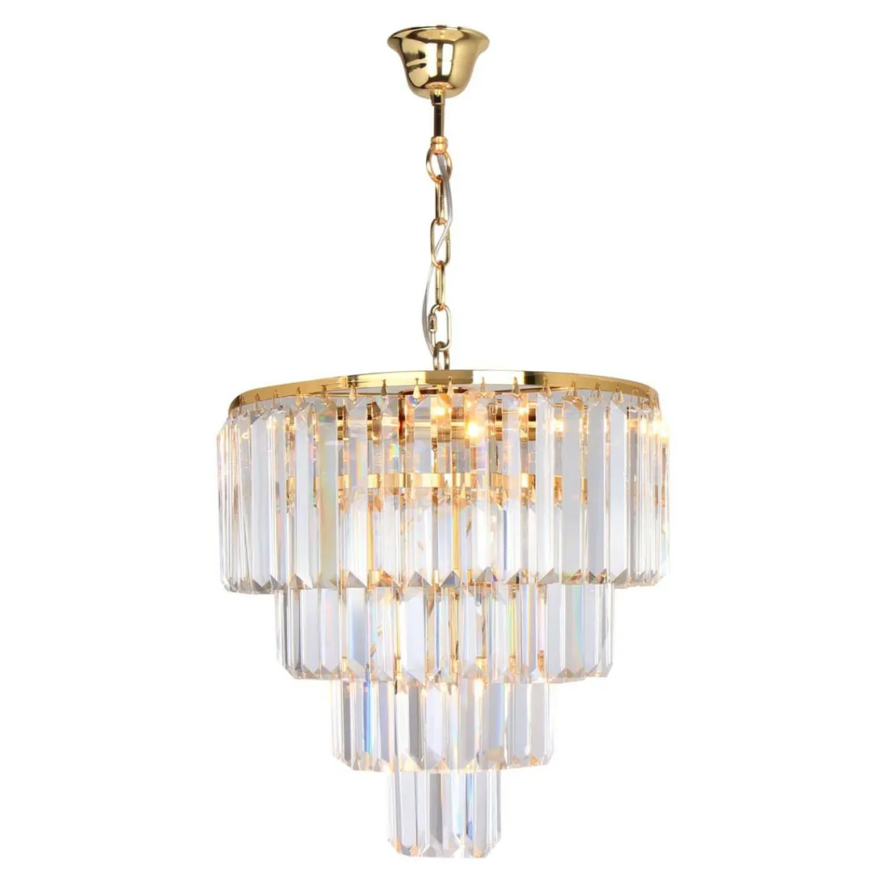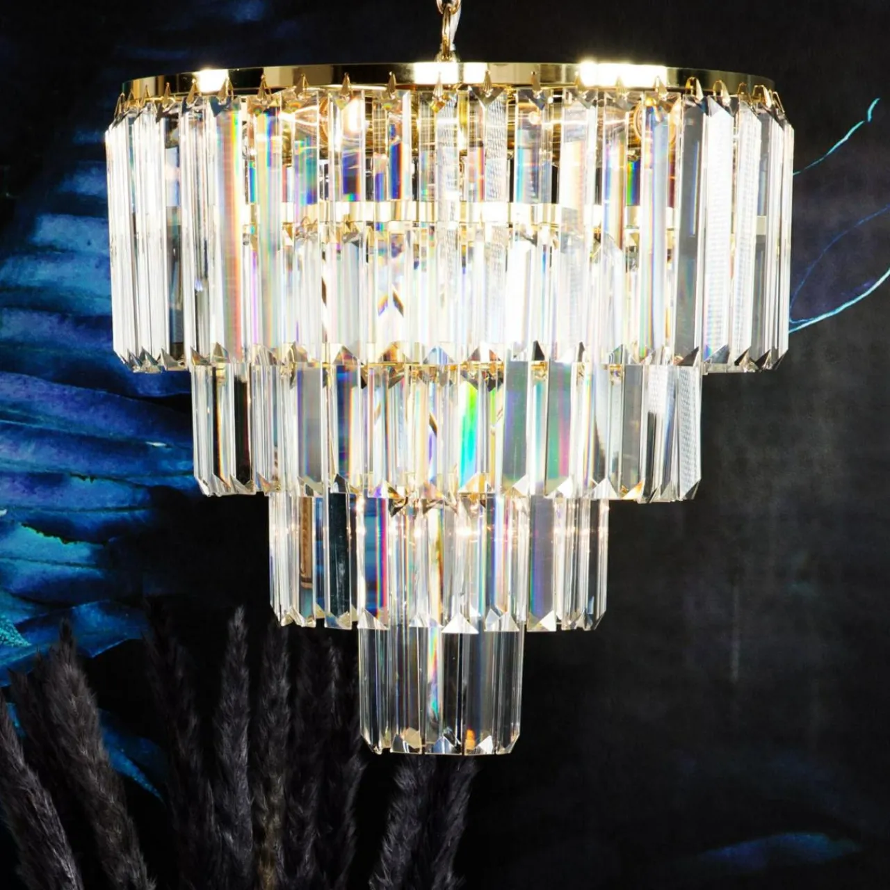 Uwagę zwracają przede wszystkim dekoracyjne walory lampy. Szklane kryształki zawieszone na metalowej podstawie uformowane są w czterech okręgach na wzór kaskady – od największego do najmniejszego. Całość tworzy ciekawe wrażenie estetyczne. Natomiast po zapaleniu światła lampa ozdabia sufit i ściany urokliwymi refleksami.